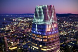 Salesforce Tower • Oakland Airport Media Wall • Great Wall of Oakland 10-story building exterior • Dallas Victory Park giant outdoor screens • David Hahn lecture projection